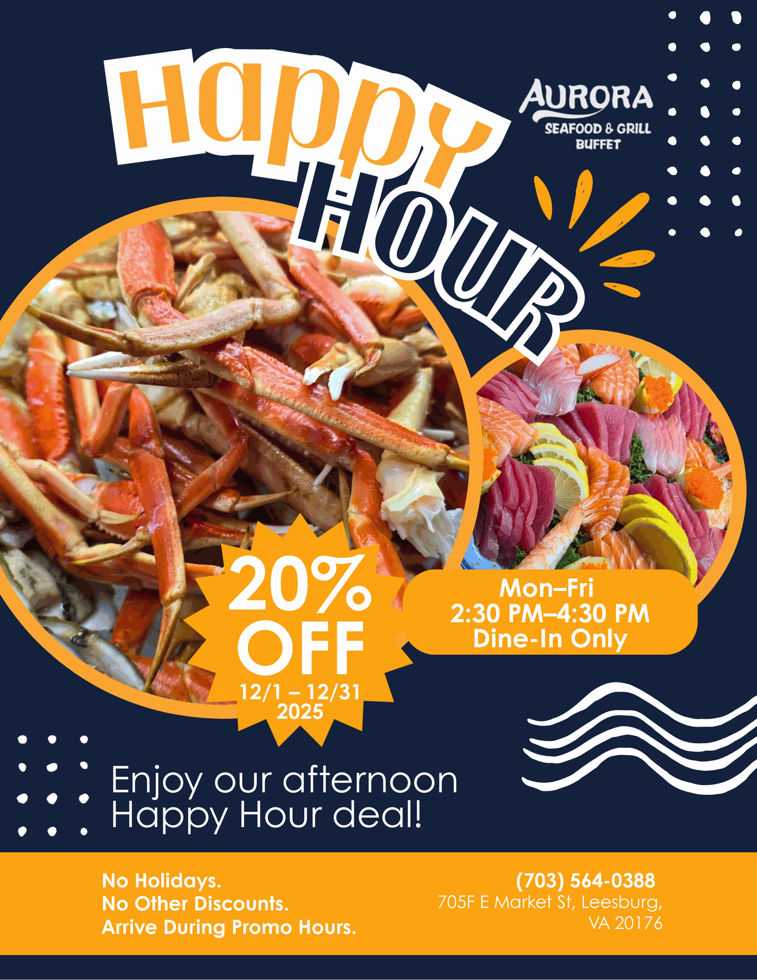 Aurora Seafood & Grill Buffet in Leesburg, VA, offers an all-you-can-eat dining experience with fresh seafood, sushi, ramen, and grill & teppanyaki dishes. Enjoy a flavorful feast with our dine-in buffet or take the deliciousness home with our carry-out buffet. Indulge in high-quality ingredients, expertly prepared for a meal that’s fresh, satisfying, and unforgettable!